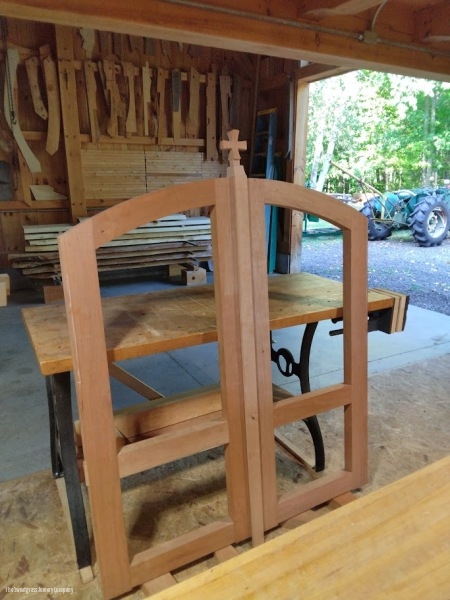 Although at the time I was asked, I had no direct experience in having designed or built such a thing, it combines elements for which I do have experience; designing and building frameworks of solid wood joined with traditional joinery secured with wooden pegs and designing, building, and finishing furniture of various needs and functions. And so, with a shared faithful willingness, the parish and I embarked on the journey together.