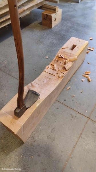 Following the harvest by a local tree company, the logs were transported from the arboretum to my shop, a distance of about 13 miles, where I then milled them into the timber and lumber needed to build 5 interpretive sign panel structures, 2 trailhead kiosks, and 19 trail wayfinding posts, 6 of which would bear custom hand-carved signs. The 7 timber structures are traditionally joined timber-frameworks. The 2 trailhead kiosks also have the Holden logo, hand-carved into the cherry header. All the carving on the kiosks and wooden plank signage was done by-hand, in-shop, with chisels and knife and in a font approved by the arboretum.
